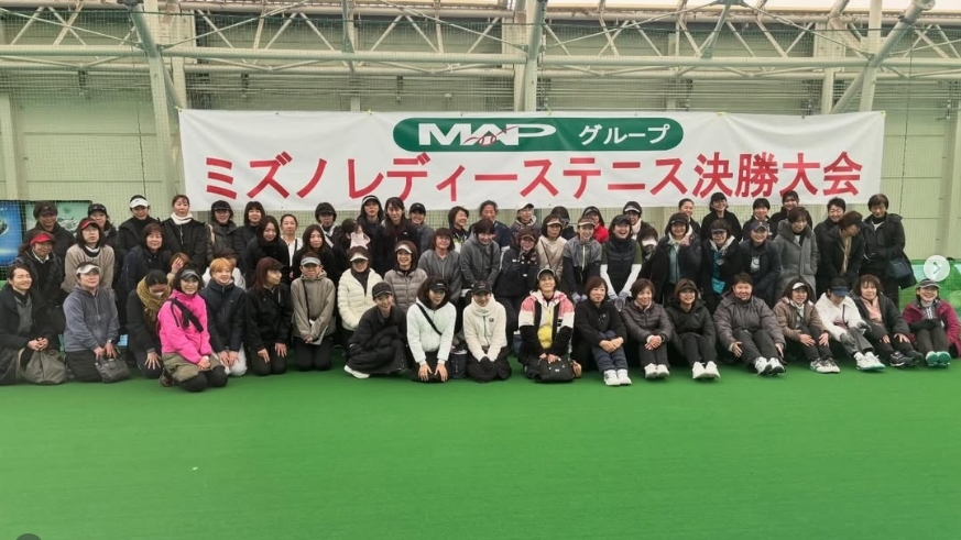 1月12日、MAPグループ(ミズノテニスプロ会)主催のMAP レディーステニス大会(団体戦)がミズノスポーツプラザ舞洲で開催され今年も、すま離宮テニススクールから3チーム参加していただきました。